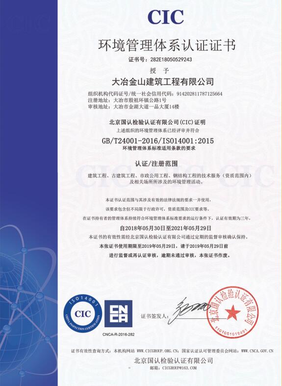 環(huán)境管理體系認(rèn)證證書...